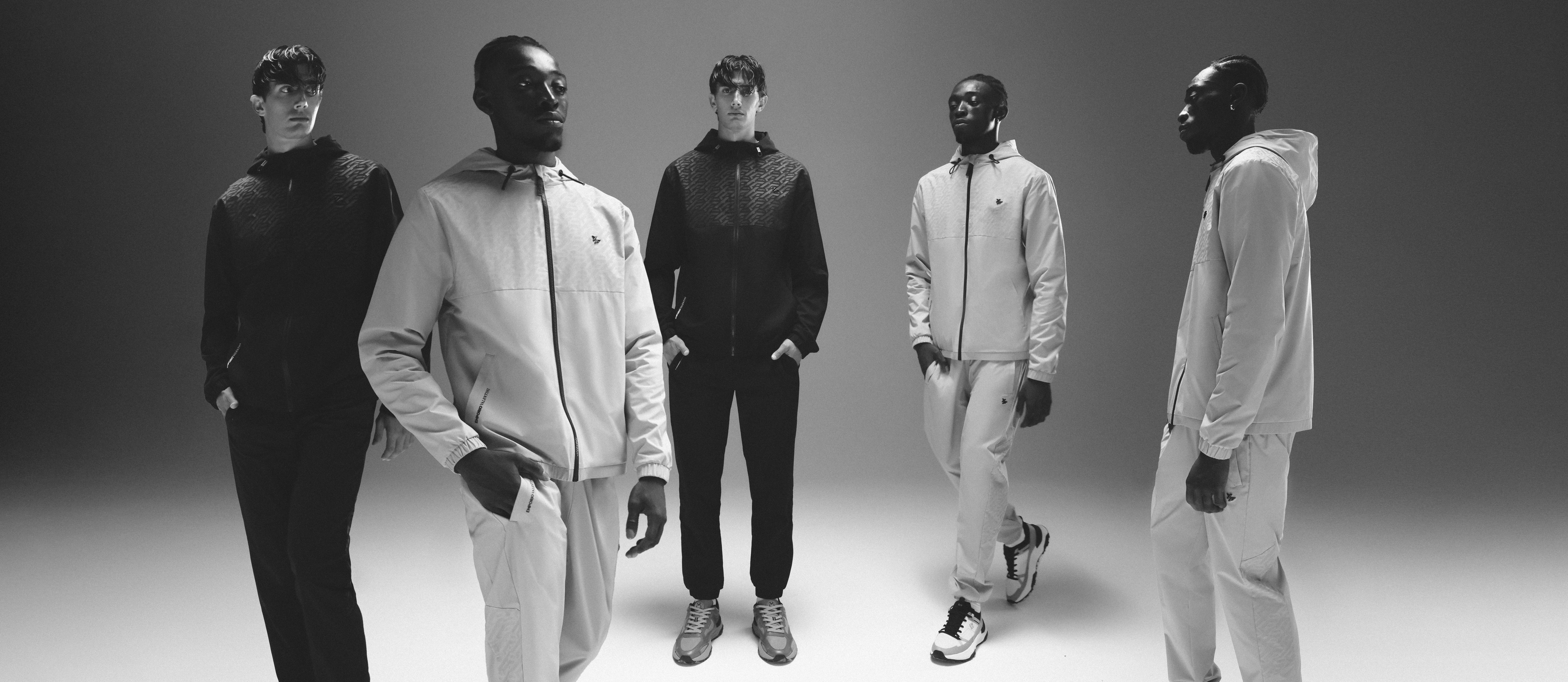 חליפת טרנינג בצבע אפור־שחור עם הדפסי לוגו
